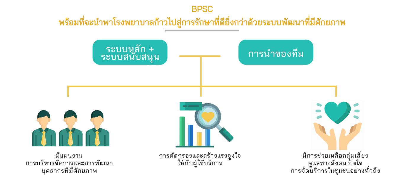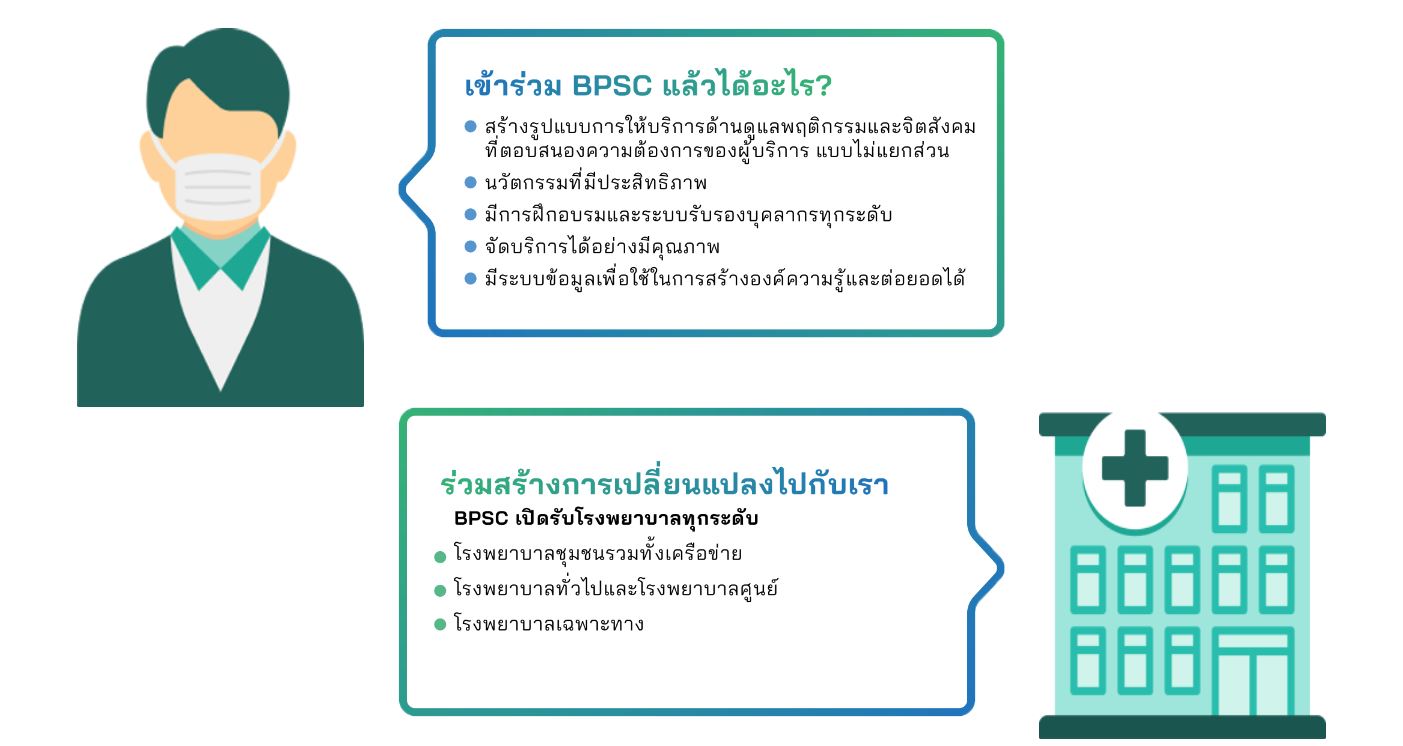 BPSC คือการดูแลแบบบูรณาการ ที่มุ่งเน้นการสื่อสารเพื่อสร้างสัมพันธภาพอันดี ระหว่างผู้ป่วยและบุคลากรทางการแพทย์ เพื่อให้ผู้ป่วยเปิดใจรับคำแนะนำ และดำเนินการต่อยอด ไปสู่การประเมินผู้ป่วยแบบองค์รวม ส่งเสริมการปรับพฤติกรรม ที่ช่วยป้องกันการเกิดโรคไม่ติดต่อเรื้อรัง (NON COMMUNICABLE DISEASE, NCD) และลดการกลับเป็นซ้ำ เพื่อสุขภาพที่ยั่งยืนของคนไทย