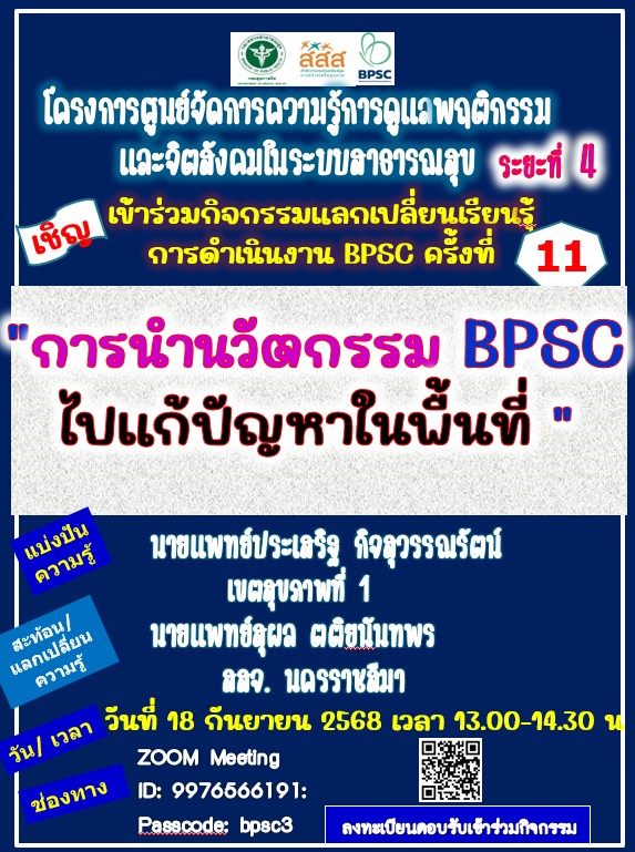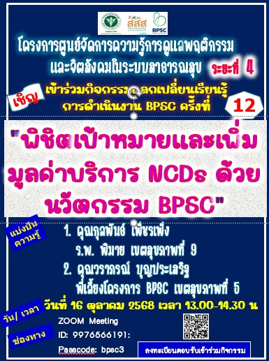 ขอเรียนเชิญลงทะเบียนกิจกรรมแลกเปลี่ยนเรียนรู้ การดำเนินงาน BPSC ระยะ 4 ครั้งที่ 12