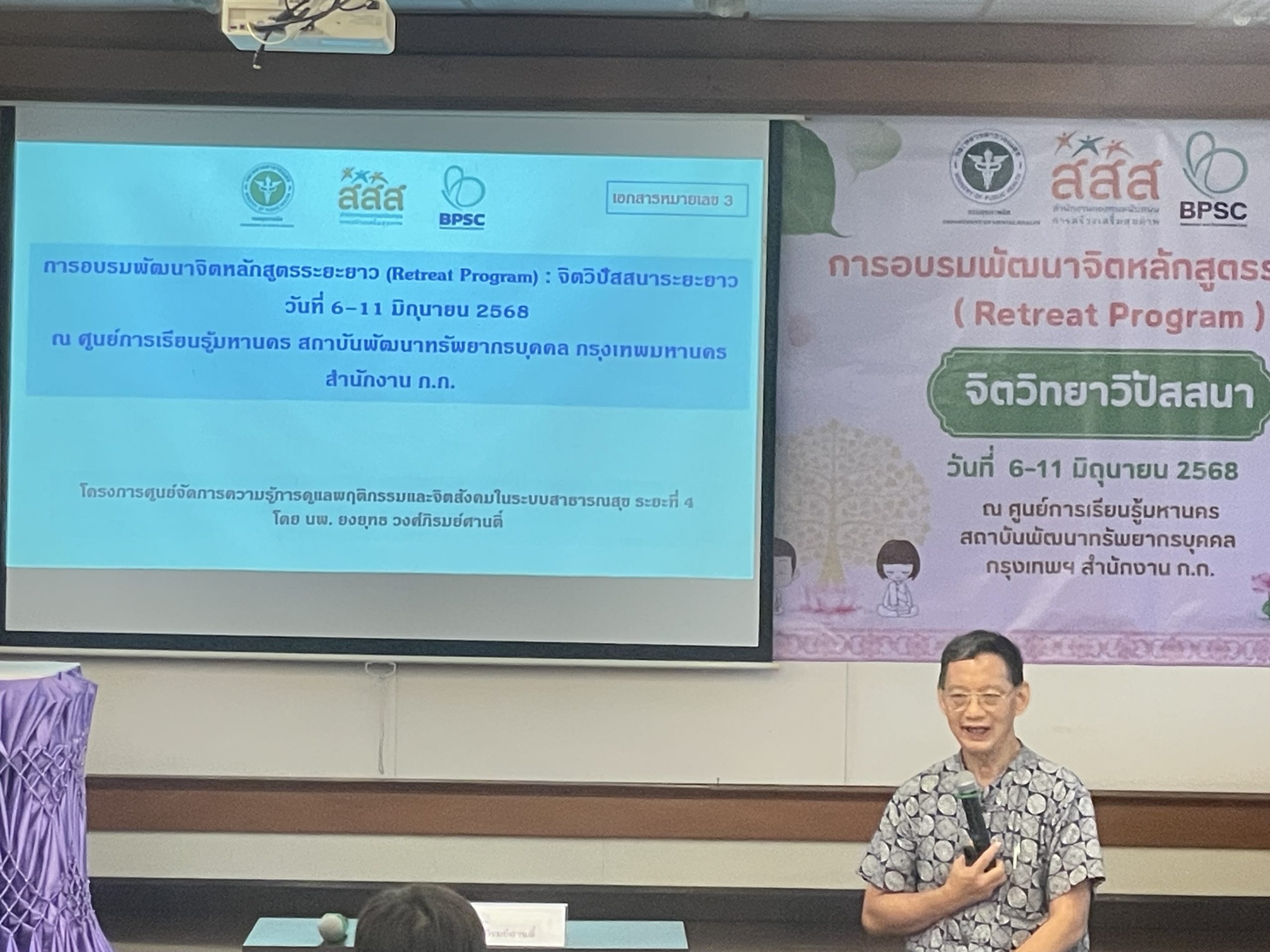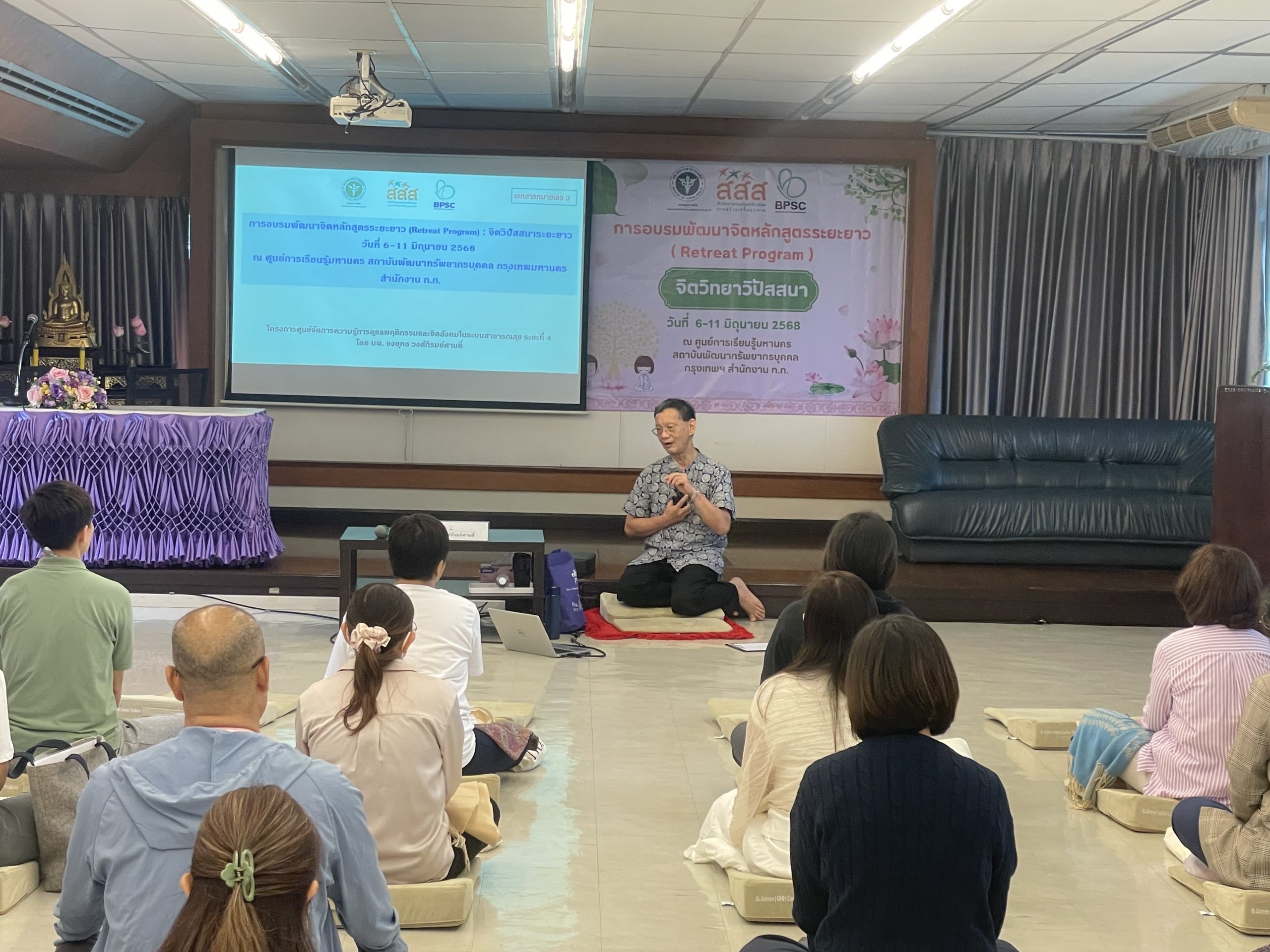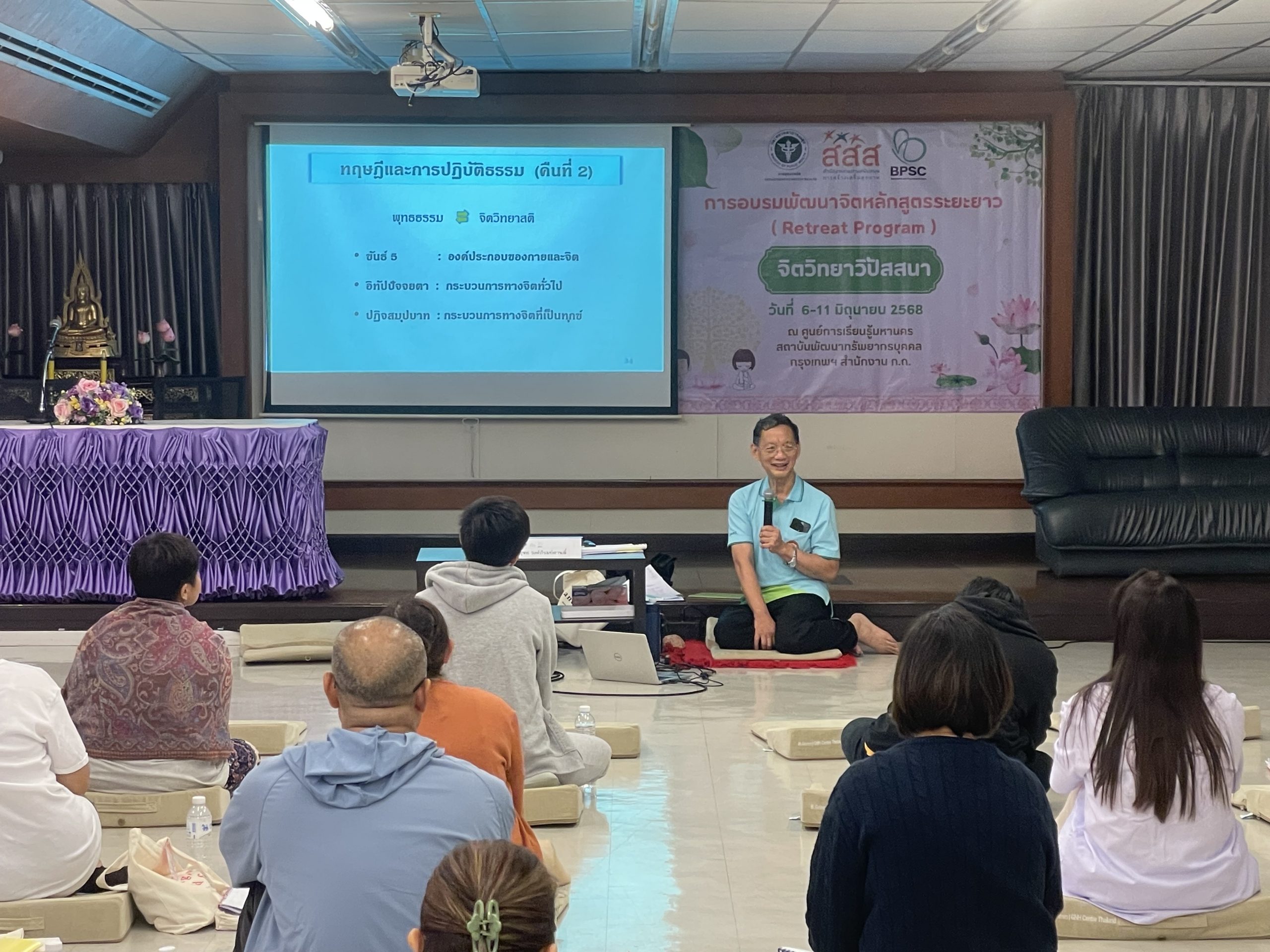 เมื่อวันที่ 6 – 11 มิถุนายน 2568 ที่ผ่านมา สถาบันพัฒนาทรัพยากรบุคคล สำนักงาน ก.ก. ได้จัดกิจกรรม การอบรมพัฒนาจิตหลักสูตรระยะยาว (Retreat Program) จิตวิทยาวิปัสสนาศูนย์การเรียนรู้มหานคร กรุงเทพมหานคร