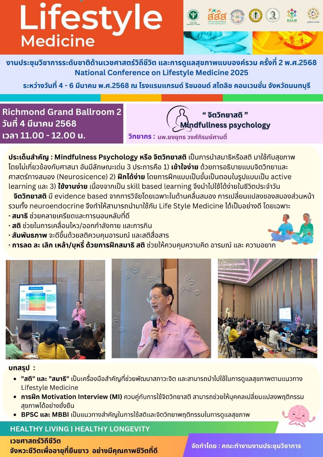เรื่อง การเผยแพร่แนวคิด ความเชื่อมโยงระหว่าง Mindfulness & Life style medicine