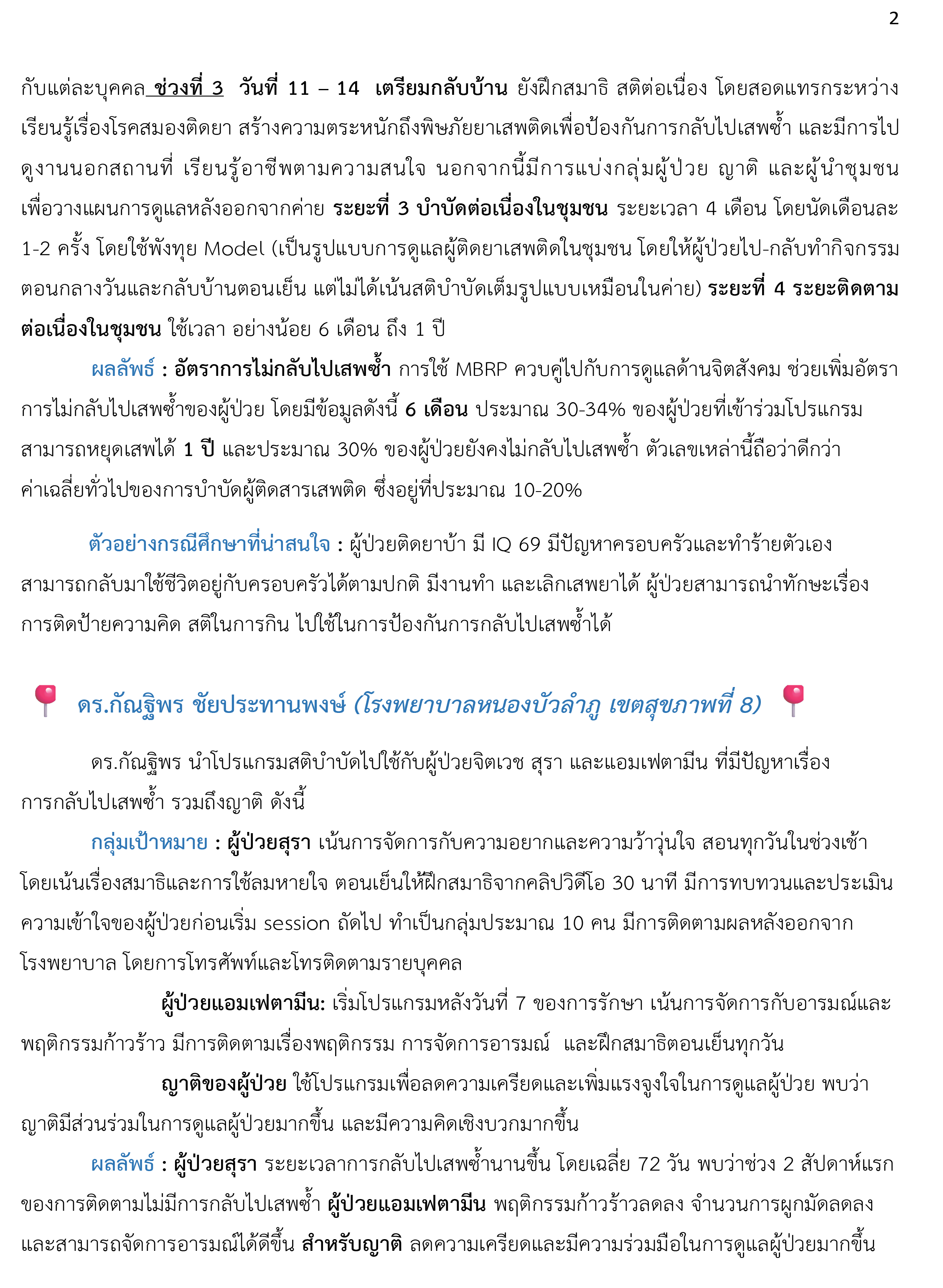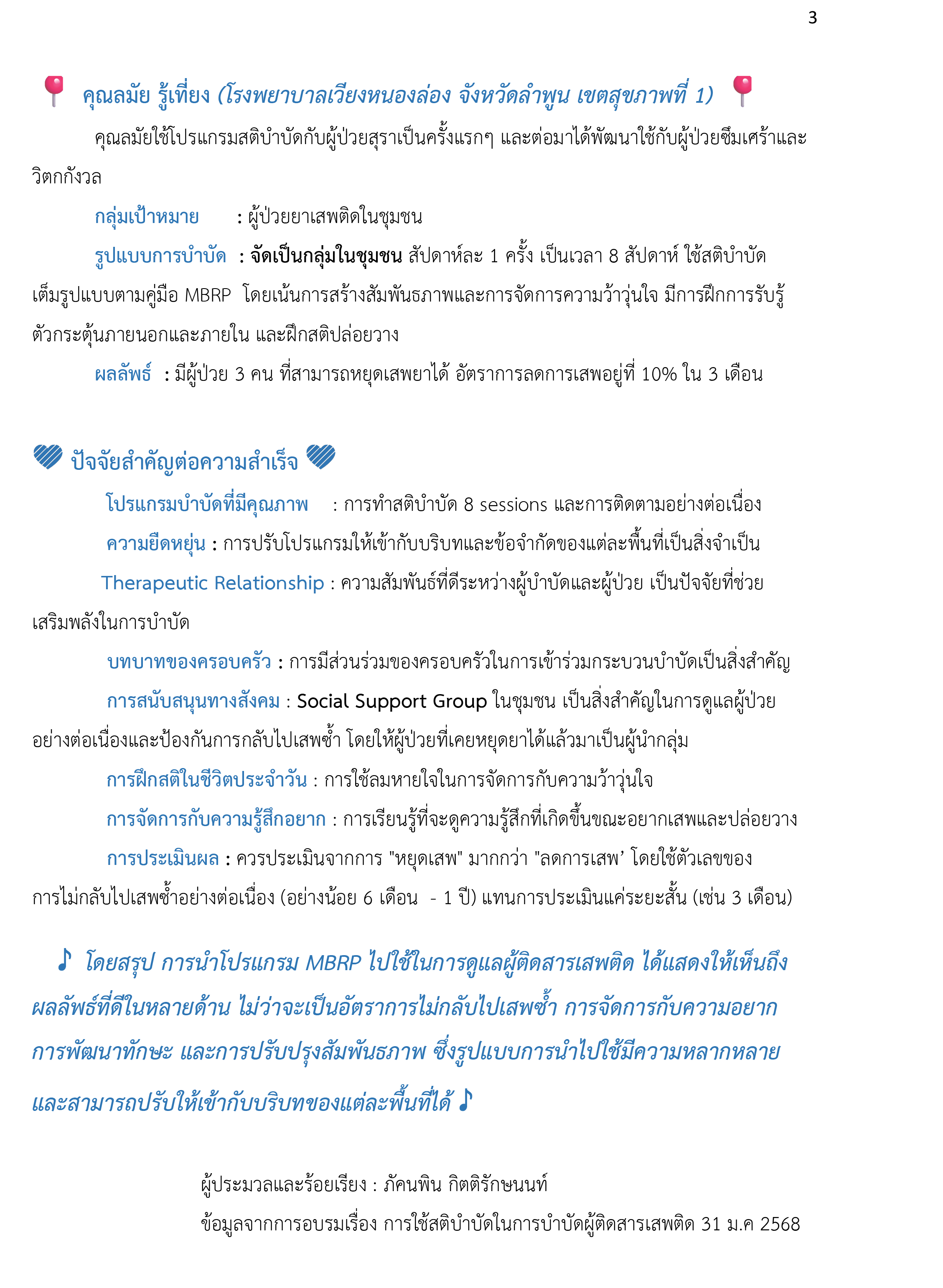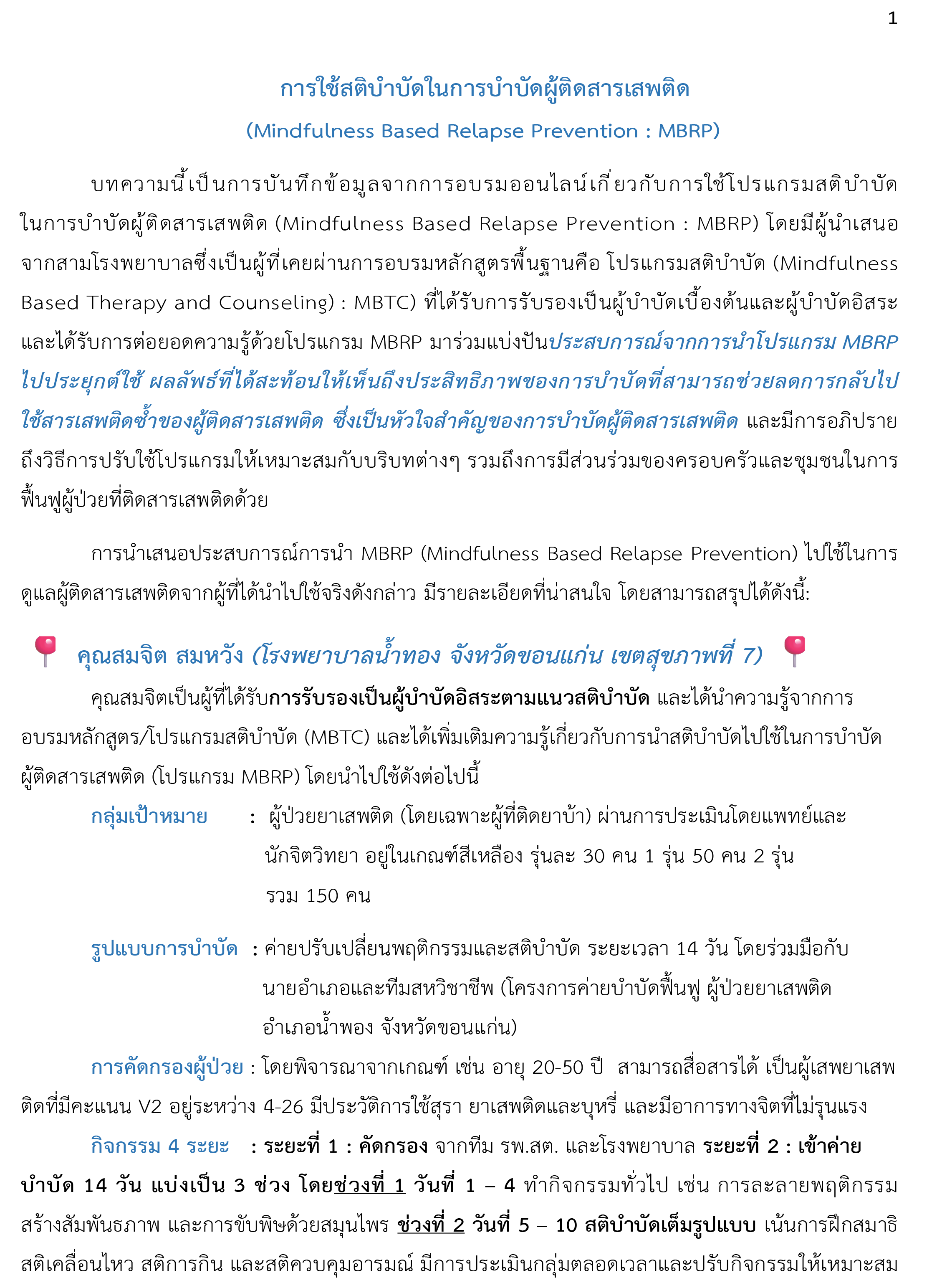 บทความจากการแบ่งปันประสบการณ์ จากการนำโปรแกรม MBRP ไปประยุกต์ใช้ ผลลัพธ์ที่ได้สะท้อนให้เห็นถึงประสิทธิภาพ