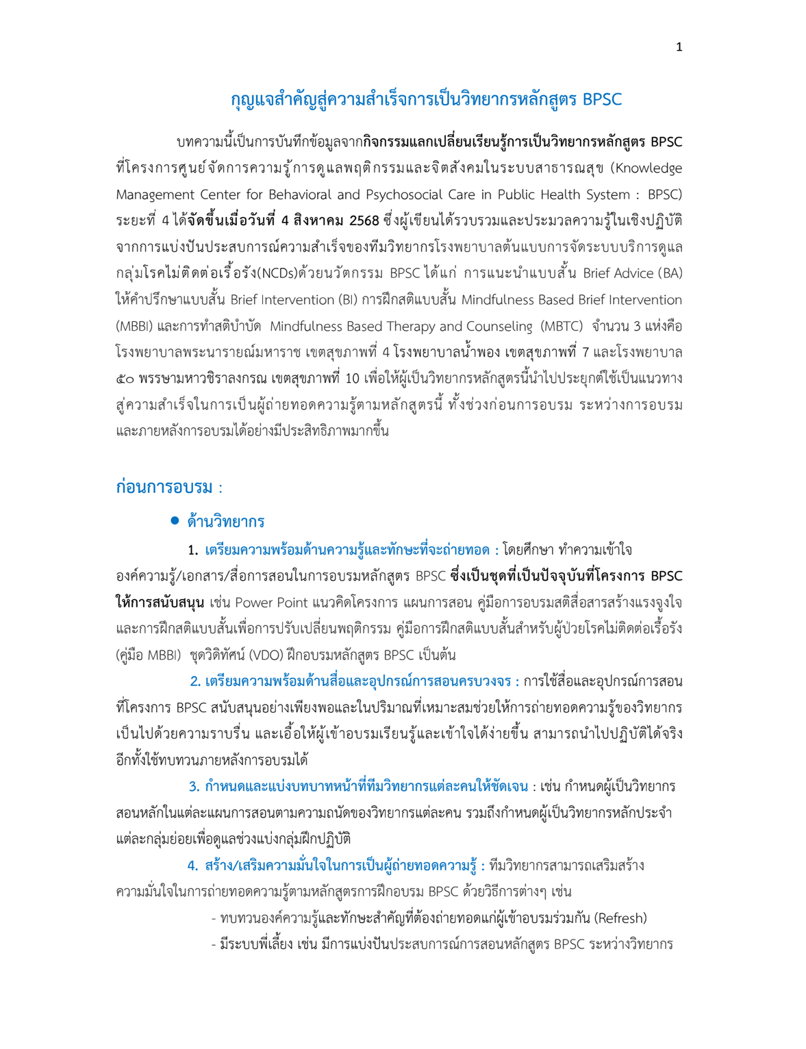 บทความ : กุญแจสำคัญสู่ความสำเร็จการเป็นวิทยากรหลักสูตร BPSC