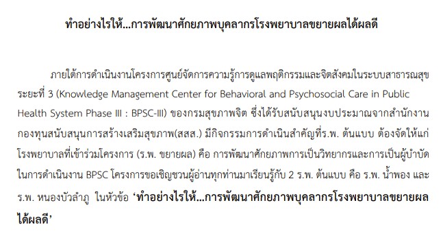 ทำอย่างไรให้…การพัฒนาศักยภาพบุคลากรโรงพยาบาลขยายผลได้ผลดี