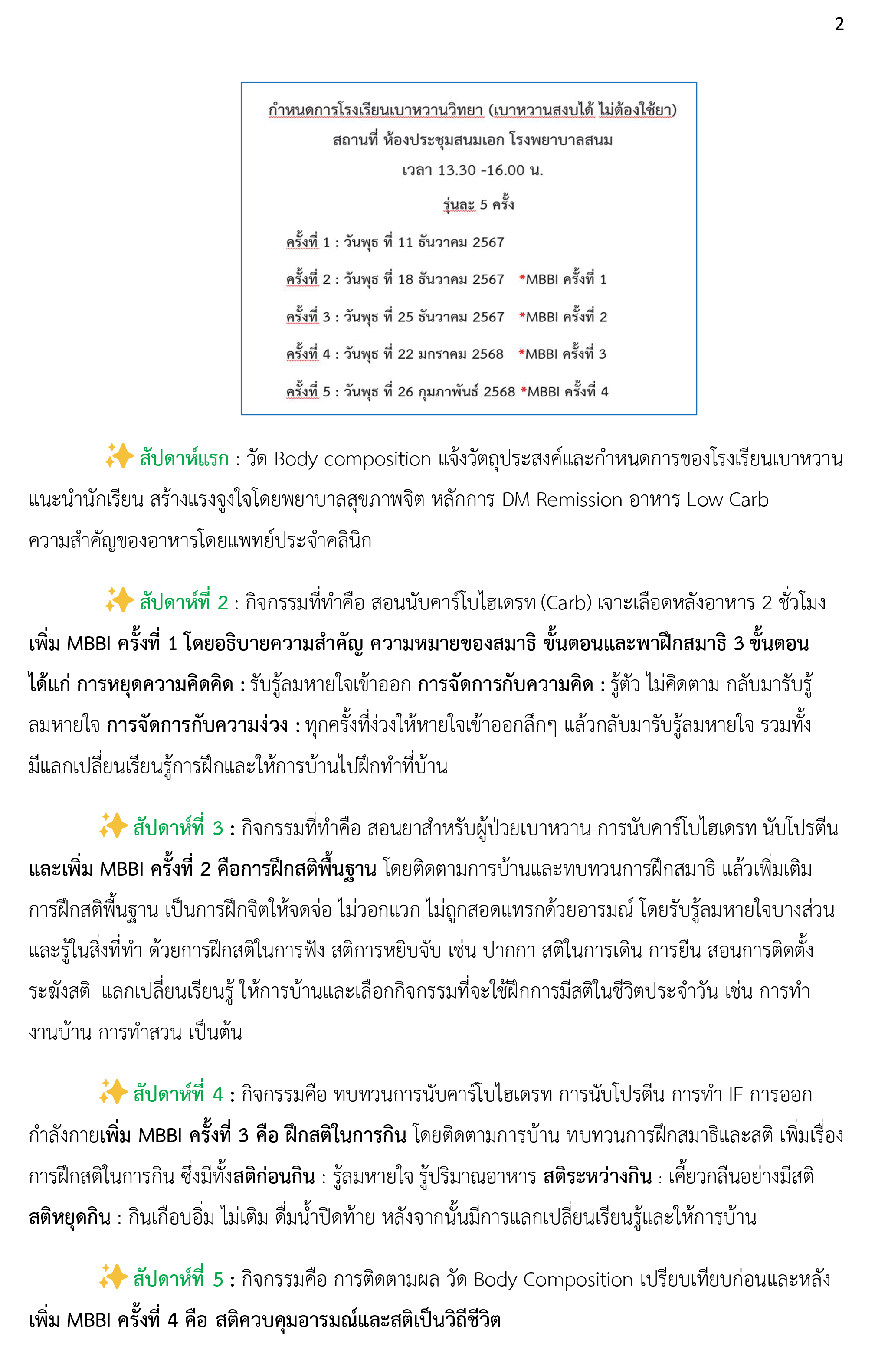 บทความ : MBBI กับการปรับเปลี่ยนพฤติกรรมในโรงเรียนเบาหวานวิทยา