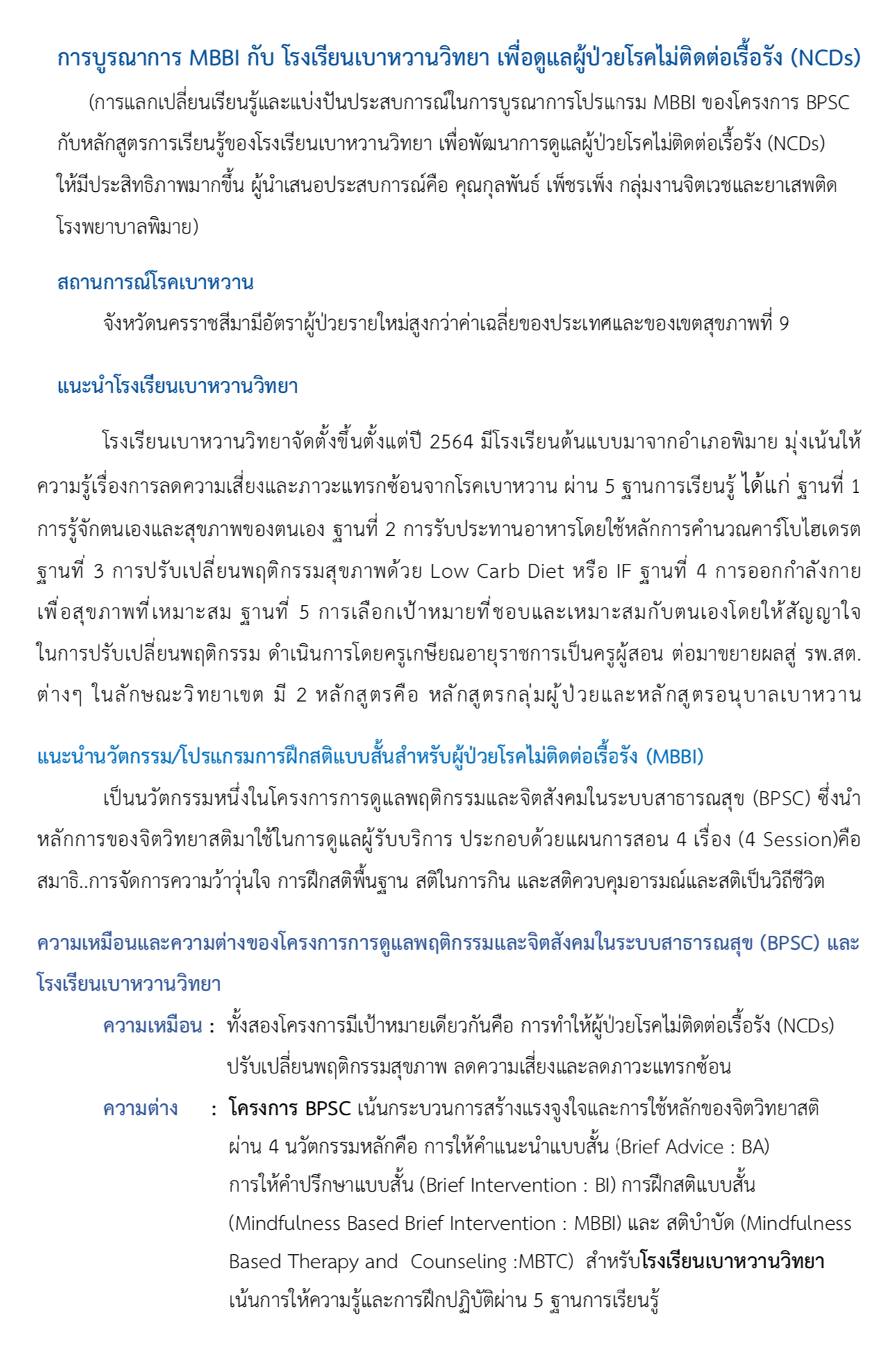 บทความ : การบูรณาการ MBBI กับโรงเรียนเบาหวานวิทยา เพื่อดูแลผู้ป่วยโรคไม่ติดต่อเรื้อรัง ( NCDs) บทความเรื่อง บูรณาการ MBBI กับ โรงเรียนเบาหวานวิทยา (Pr) ดาวน์โหลดบทความฉบับเต็มได้ที่นี่ rootbpscthai2024-12-07T05:35:37+00:00บทความ|